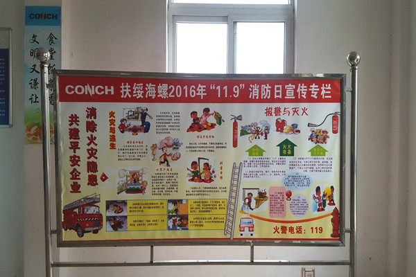 11月7日起,公司緊緊圍繞“11.9”消防活動主題,充分利用宣傳櫥窗、橫幅等形式普及安全用火、用電、用氣、用油等消防知識。傳播能引起員工警覺、富有教育意義的消防安全理念與實用的消防知識。