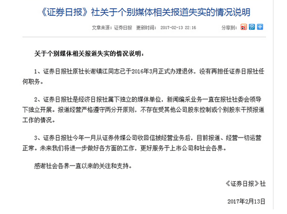1.證券日?qǐng)?bào)社原社長(zhǎng)謝鎮(zhèn)江同志已于2016年3月正式辦理退休,沒(méi)有再擔(dān)任證券日?qǐng)?bào)社任何職務(wù)。