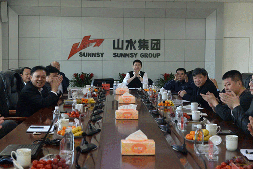 會談中,宓敬田首先代表山水集團對來訪領導表示熱烈歡迎,簡要介紹了山水集團2016年生產經營狀況及2017年生產經營目標、措施,分享了山水集團在落實國家供給側政策、化解產能過剩、深度參與各區域市場協調、嚴格實施錯峰生產等方面的經驗和取得的成績。