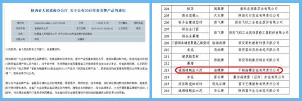 近日,陜西省人民政府辦公廳下發(fā)《關(guān)于公布2016年省名牌產(chǎn)品的通知》中,千陽海螺水泥有限責任公司生產(chǎn)的“海螺”牌P.O42.5水泥再次榮獲“陜西省名牌產(chǎn)品”榮譽稱號。