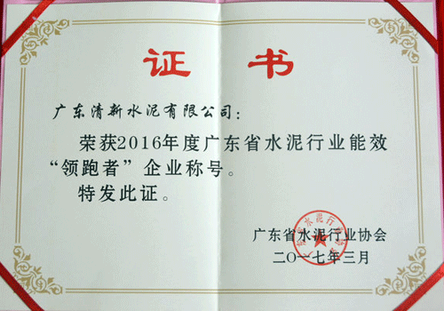 2017年3月22日,憑借可比水泥綜合能耗最低的突出優勢,清新海螺從170家參與能耗對標水泥企業中脫穎而出,繼2015年后,公司再次獲得年廣東省水泥行業能效“領跑者”企業稱號,成為2016年度廣東省水泥)行業唯一獲此殊榮的企業。