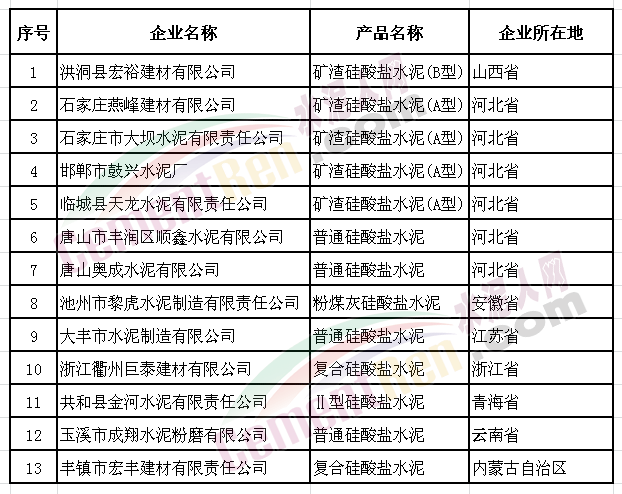 本次工作計劃對水泥產品的 798 家企業開展監督檢驗,其中有 89 家企業因停產、拆除、被查封等原因未接受監督檢驗。在接受監督檢驗的 709 家企業的 709 批次樣品中,有 13 家企業的 13批次產品檢驗不合格,不合格項主要為氯離子含量、氧化鎂含量不合格。