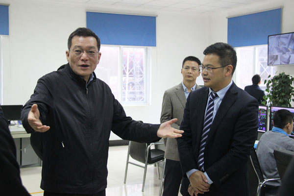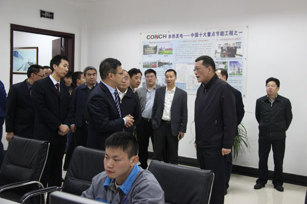 隨后,馮書記一行來到利用水泥窯協同處理城市生活垃圾項目。在七樓中控室,李總向馮書記一行詳細介紹了協同處置城市生活垃圾項目的原理、過程和實施效果。當聽到項目采用世界首創的垃圾處理技術,能無害化、節約化處理生活垃圾,還能替代部分燃料生產時,馮書記指出,這是一個好項目,有很好的社會和環境效益,是“五彩巴中”的典型代表,南江縣要盡快建立完善三級垃圾收集處理網絡,年底前要滿足項目滿負荷運轉,同時政策上要予以支持,切實發揮好項目的作用。