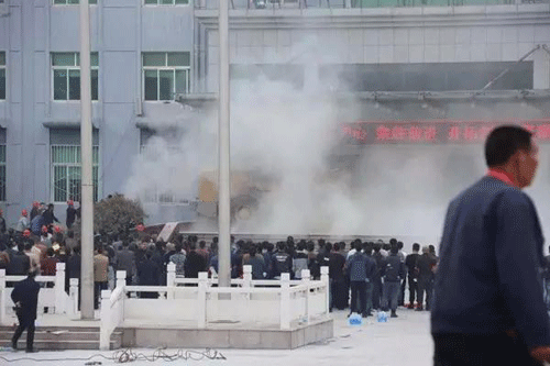 推土機(jī)撞擊辦公樓現(xiàn)場