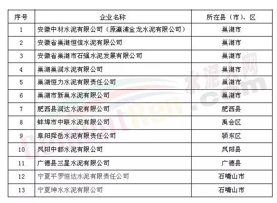 圖:安徽、寧夏2017年強(qiáng)制性清潔生產(chǎn)審核水泥企業(yè)名單