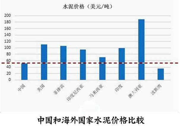相關數據顯示,即使按照國內目前較高的價格354元/噸計算,國內水泥價格折合美元約54美元/噸。目前,除波斯灣外,其余國家地區水泥價格均遠高于中國。美國、菲律賓的水泥價格幾乎是中國的兩倍,澳洲則更高,是中國的三倍還要多。