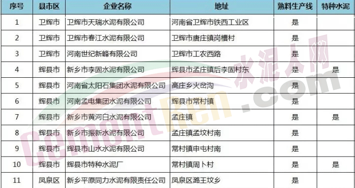 水泥人網10月初發布了河南地區水泥企業將于采暖季停限產名單,其中熟料生產線未提及特種水泥。(相關鏈接:這一地區“73+201”家水泥企業將于采暖季停限產(附名單))