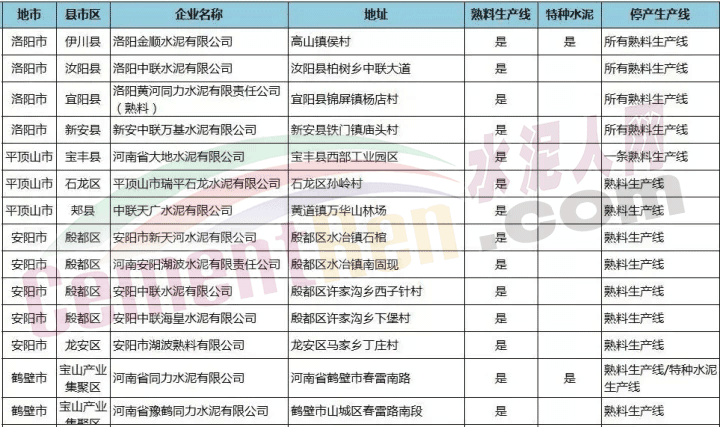 近日從當地相關部門獲悉,冬季停窯涉及的七十余家水泥企業包括熟料生產線外還包括多家特種水泥生產線。具體停產時間名單詳情如下:
