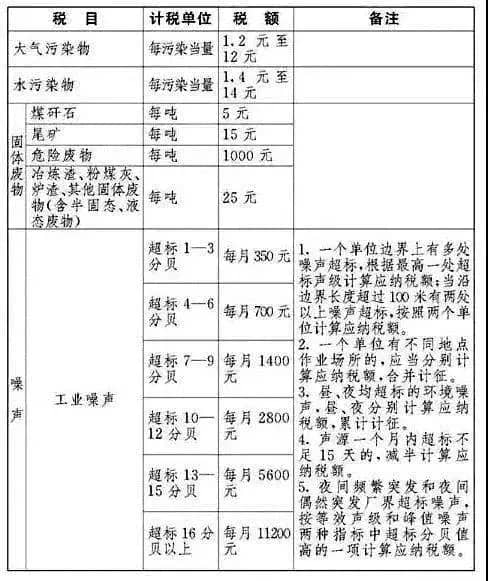 江蘇:大氣污染物和水污染物中的主要污染物征收標準分別是每污染當量4.8元和5.6元。基本遵循“稅費平移”。(尚未通過省人大表決)