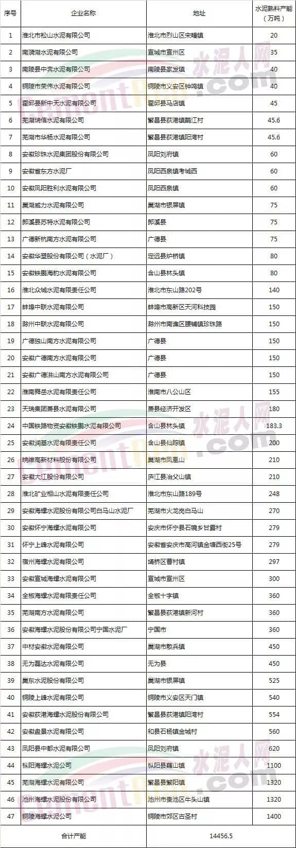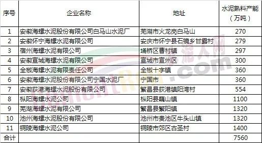 以上47家企業(yè)中有11家海螺水泥,產(chǎn)能份額約占安徽省熟料首批的52%以上。