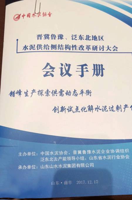 會議由中國水泥協(xié)會、晉冀魯豫水泥企業(yè)協(xié)調(diào)組織泛東北去產(chǎn)能領(lǐng)導(dǎo)小組、山東省水泥行業(yè)協(xié)會主辦。由山東山水水泥集團有限公司承辦。會議議題分為政策發(fā)布,協(xié)會領(lǐng)導(dǎo)講話和會議交流等。