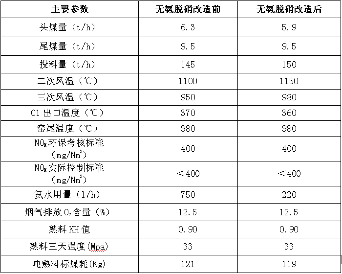 主要參數(shù)無氨脫硝改造前無氨脫硝改造后
