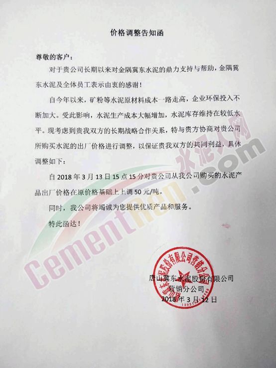 受鋼鐵企業錯峰生產影響,近期水泥生產用礦粉價格持續上調。昨日(12日),唐山地區主導企業發布調價通知稱:由于近期礦粉等水泥原材料成本一路走高,企業環保投入不斷加大,水泥生產成本大幅增加,水泥庫存維持在較低水平。故而上調水泥價格。上調幅度在50元/噸。