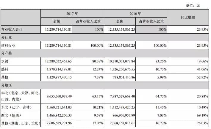 2017年,受益于“京津冀協(xié)同發(fā)展”國家戰(zhàn)略的推進以及水泥行業(yè)“供給側(cè)結(jié)構(gòu)性改革”的積極影響,公司核心區(qū)域水泥市場秩序持續(xù)改善,水泥市場價格理性回歸,水泥和熟料毛利率同比大幅提升;