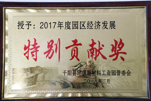 【水泥人網】近日,從千陽縣環保新材料工業園管委會傳來喜訊,千陽海螺公司榮獲2017年度園區經濟發展特別貢獻獎。
