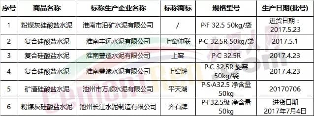 備注:以上六個批次抽檢不合格項目為強度等級