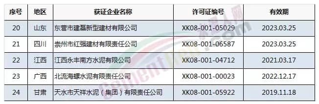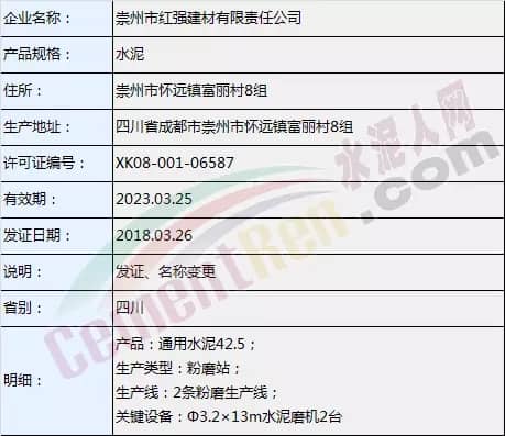 【水泥人網】2018年3月26日國家質檢總局發放3月份第4批24家水泥企業生產許可證。其中新發證書12家,到期延續7家,涉及變更的5家。其中涉及名稱變更的2家,許可證范圍變更的2家,涉及其他變更項目的1家。 一、發證 二、延續 三、變更 1、發證、名稱變更 2、其他(兼并重組) 3、許可證范圍變更(增加產品單元) 4、許可范圍變更(增加熟料生產線)