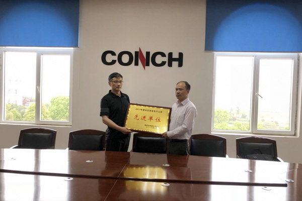 【水泥人網】近期,從區安監局獲悉,贛江海螺獲南昌市新建區2017年度安全生產工作“先進單位”榮譽稱號,同時,公司分管安全的副總經理趙炳和獲2017年度“安全生產工作先進個人”榮譽稱號。2018年4月4日下午,新建區安監局李局長到訪,親自頒發榮譽證書。