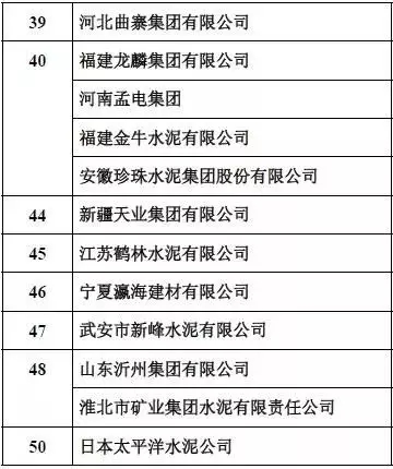 2018年中國水泥熟料產(chǎn)能50強(qiáng)