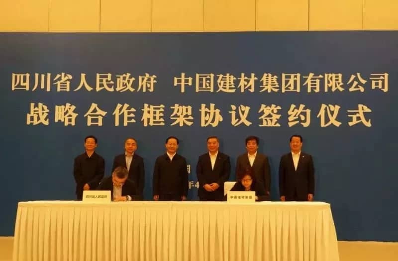 中國建材集團集團總會計師徐衛(wèi)兵和四川省副省長朱鶴新代表雙方簽字。集團紀(jì)委書記楊杰,四川省委常委、成都市委書記范銳平出席儀式。