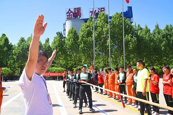 比賽嚴格按照九運會拔河比賽規則要求,開幕式前對每一位隊員的體重進行了嚴格測量,確保比賽的公平和公正。開幕式入場式中各公司代表隊,喊著響亮的口號,邁著整齊自信的步伐,走出了金隅人的自信和風采!隨后舉行了隆重的升旗儀式,所有人員神色莊嚴地面向升旗臺,伴隨著雄壯的國歌聲響起,大家的目光隨著國旗的緩緩上升而移動。整個升旗儀式簡短而隆重。贊皇金隅黨委副書記、紀委書記、工會主席郭書芬主持了開幕式,黨委書記常延輝代表全體干部職工致歡迎詞。冀中區域組長單位鼎鑫——靈壽區域公司黨委副書記、紀委書記、工會主席武相艷講話,比賽總裁判長宣布拔河比賽規則,裁判員代表與運動員代表分別宣誓,贊皇金隅經理孫建勛宣布比賽開始。