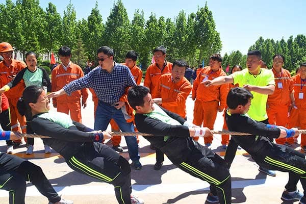 正式比賽前,現場工作人員帶領大家進行了拉伸運動。當比賽的哨聲響起,各公司的隊員們雙手緊握長繩,口中一齊高呼著“一二、一二”,團結一心,憋足了勁拼命向后拉,各公司啦啦隊為比賽隊員吶喊加油,哨子聲、吶喊聲,此起彼伏,飄蕩在贊皇金隅辦公樓廣場上空。經過激烈的角逐,最終,鼎鑫——靈壽區域公司力壓群雄拔得頭籌取得冠軍,易縣——淶水區域公司榮獲亞軍,贊皇金隅公司榮獲季軍。