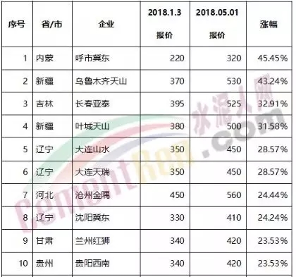 從價(jià)格方面來(lái)看,今年1-4月份廣東省、陜西省、江蘇省、云南省、河南省多區(qū)域企業(yè)連續(xù)發(fā)布漲價(jià)通知,從部分企業(yè)的漲幅來(lái)看已超過(guò)50%以上