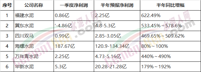 【水泥人網】近期已經有多家水泥企業上市公司發布了半年業績預告,且都公告大賺。