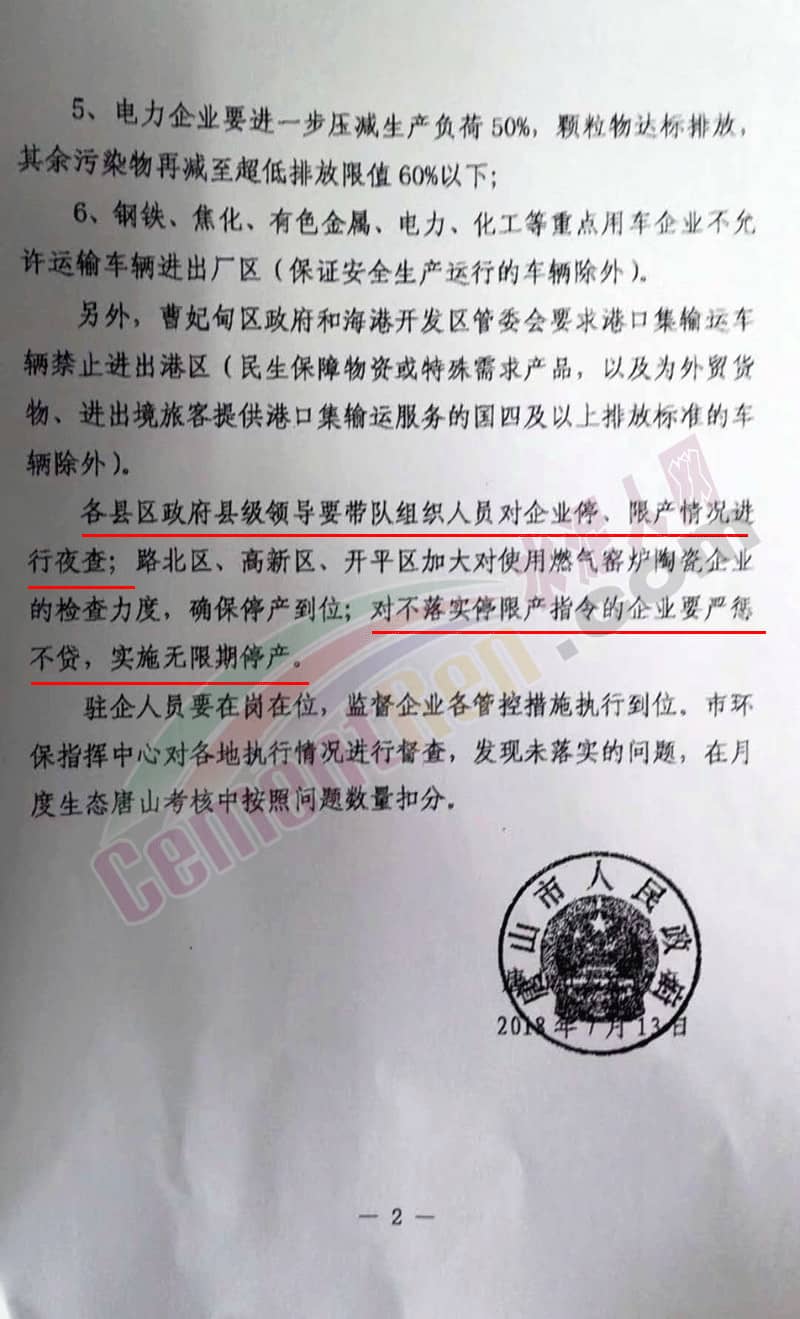 同時,針對于此次重污染天氣的停限產(chǎn)唐山市政府要求各縣區(qū)政府縣級領(lǐng)導(dǎo)要帶隊組織人員對企業(yè)停、限產(chǎn)情況進(jìn)行夜查;對不落實(shí)停限指令的企業(yè)要嚴(yán)懲不貸,實(shí)施無限期停產(chǎn)。