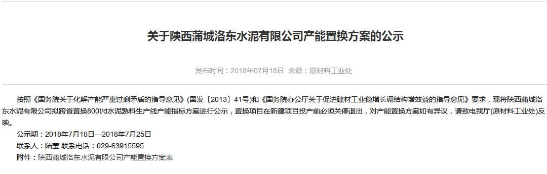 陜西蒲城洛東水泥有限公司產(chǎn)能置換方案