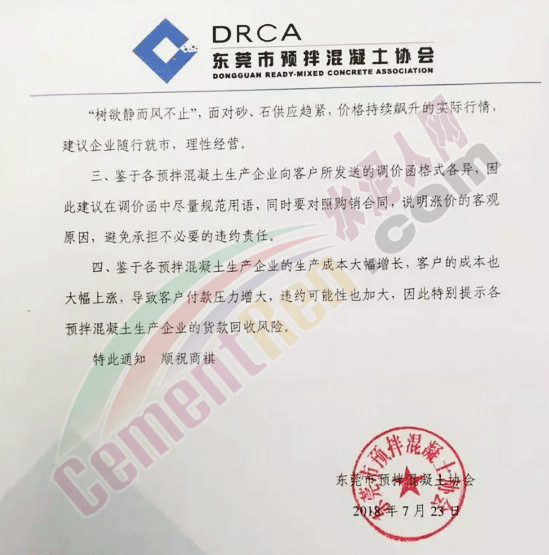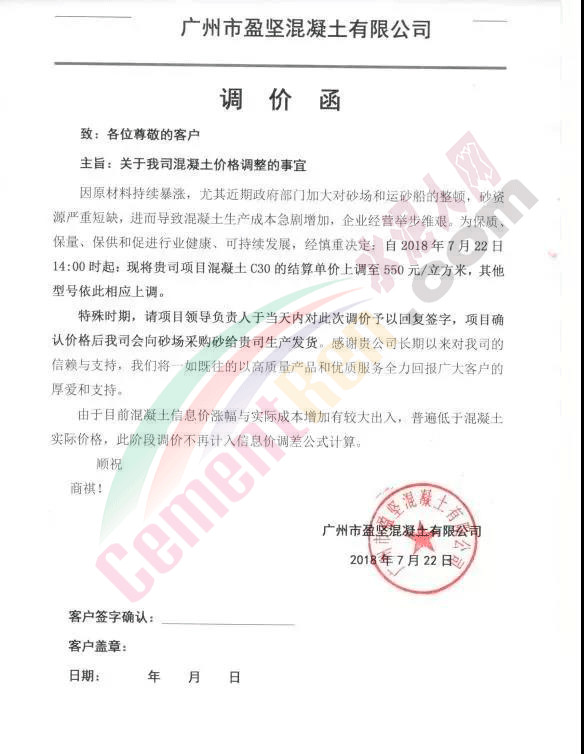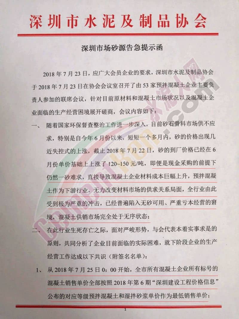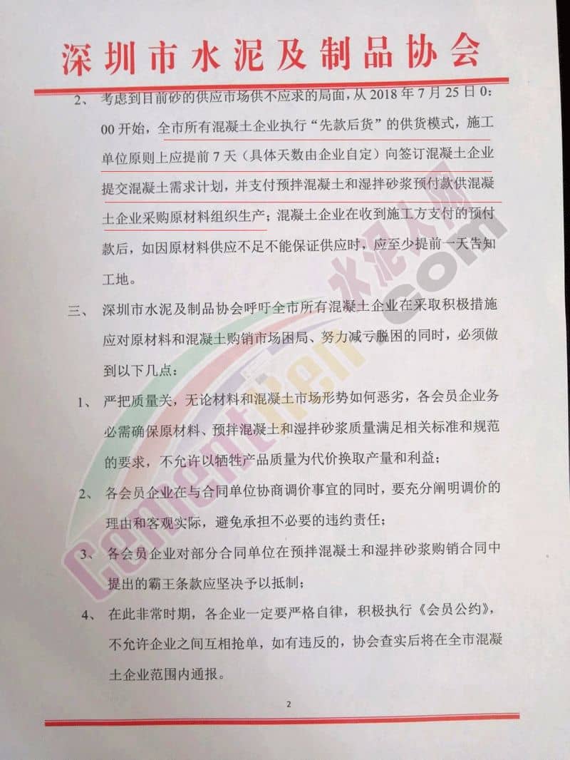 1、從2018年7月25日0點開始,全市所有混凝土企業所有標號的混凝土銷售單價全部按照2018年第6期“深圳建設工程價格信息”公布的對應等級預拌混凝土和濕拌砂漿單價作為最低銷售單價;
