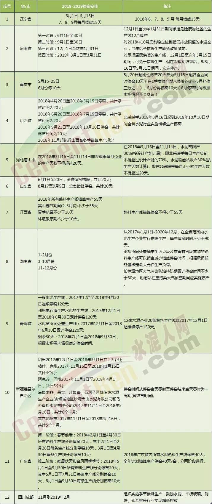 但是水泥行業(yè)卻出現(xiàn)了截然不同的現(xiàn)象---錯峰停產(chǎn)依賴癥,全國各地的錯峰停產(chǎn)轟轟烈烈,有種變本加厲的態(tài)勢,進入9月霧霾或?qū)⒃俣葋硪u,10月1日開始北方的秋冬季錯峰停產(chǎn),再加上此前各區(qū)域發(fā)布的2018-2019年錯峰生產(chǎn)計劃,大半個中國的水泥廠將進入“停產(chǎn)季”。