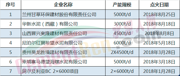 據不完全統計,2018年以來新建點火以及在建水泥生產線如下: