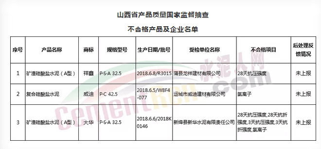 不合格產品生產企業分別是蒲縣龍祥建材有限公司、運城市威迪建材有限公司和新絳縣新華水泥有限責任公司。
