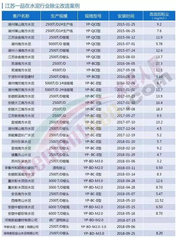 就在眾多電除塵器和除塵電源生產(chǎn)企業(yè)對電除塵器超低排放不抱希望時,江蘇一品環(huán)保人,審時度勢,敢為天下先,決定嘗試將電除塵器通過技術(shù)改造,也能符合國家要求達到超低排放標準。決心下定后,公司即組織技術(shù)人員,走訪和考察了諸多水泥企業(yè),悉心聽取水泥生產(chǎn)企業(yè)電氣設(shè)備部門一線技術(shù)人員的建議和設(shè)想,拜訪多名水泥設(shè)計研究人員,結(jié)合目前市場上電除塵器現(xiàn)有結(jié)構(gòu)和應用狀況,在本公司已取得電除塵器豐富改造經(jīng)驗的基礎(chǔ)上,再次升級“智能變頻除塵電源”技術(shù),通過不斷的技術(shù)實踐和總結(jié),江蘇一品終于創(chuàng)立一套切實可行的電改電達到超低排放的系統(tǒng)工程技術(shù),從2017年下半年開始,應用在10多條水泥生產(chǎn)線窯頭的電除塵器超低排放改造,改造案例已成功運行近一年,一直穩(wěn)定在<10mg/m3的超低排放標準!