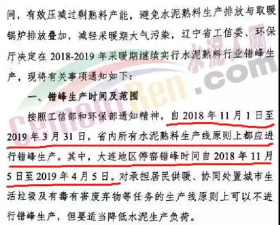 本月開始多省市開始執行中央文件——錯峰生產,遼寧地區工信委和環境保護廳也在之前聯合發文,遼寧地區自11月1日起至2019年3月31日執行錯峰生產。在執行錯峰生產期間,水泥人網編輯人員發現遼寧省大部分水泥企業、粉磨站企業都能積極響應省經信委、環保廳的指示精神,積極執行錯峰生產,而遼寧大鷹水泥旗下2家子公司,丹東大鷹一條5000t/d熟料生產線,阜新大鷹2條熟料生產線,一條2500t/d,一條3200t/d的熟料生產線,朝陽蘭陵水泥1條1000t/d,錦州三鴿1條4000t/d熟料生產線以及遼寧撫順水泥2000t/d熟料生產線無視政府文件,拒不執行省級錯峰生產,生產如火如荼的在進行中。