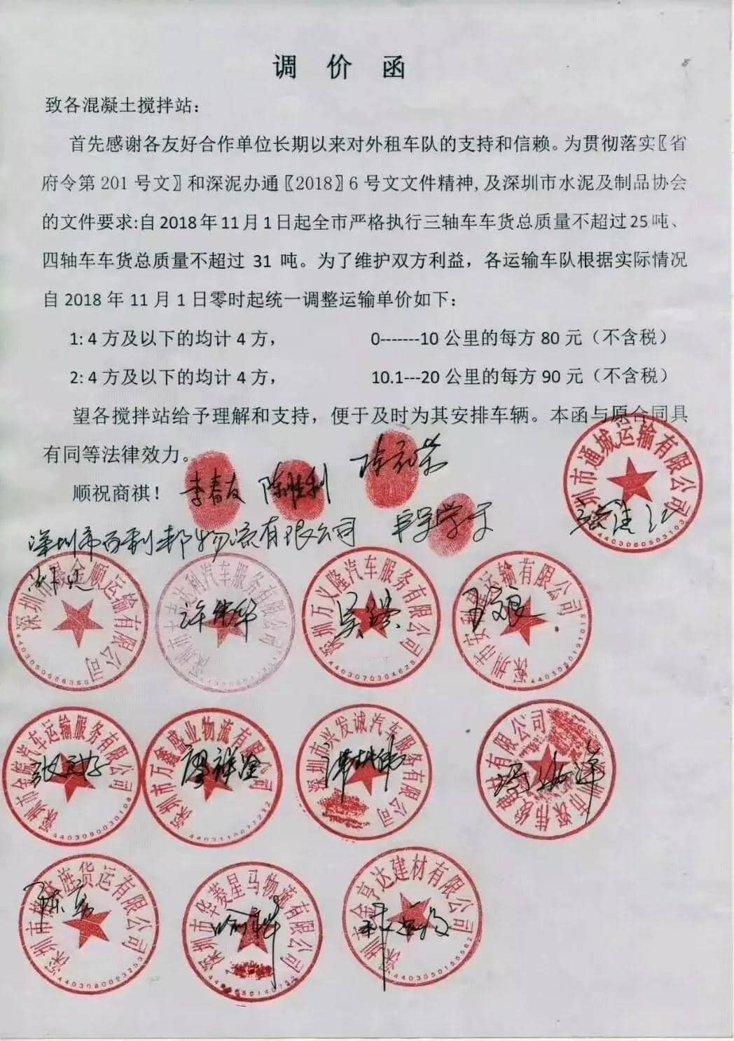 為了維護(hù)雙方利益,各運(yùn)輸車(chē)隊(duì)根據(jù)實(shí)際情況自11月1日零時(shí)起統(tǒng)一上調(diào)運(yùn)輸單價(jià):4方及以下的均計(jì)4方,0--10公里每方80元(不含稅);10.1--20公里的每方90元(不含稅)。
