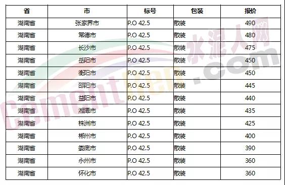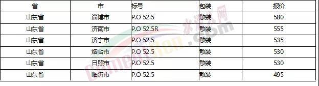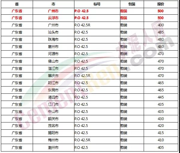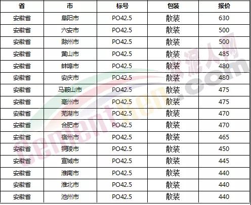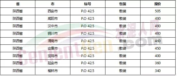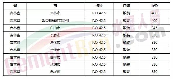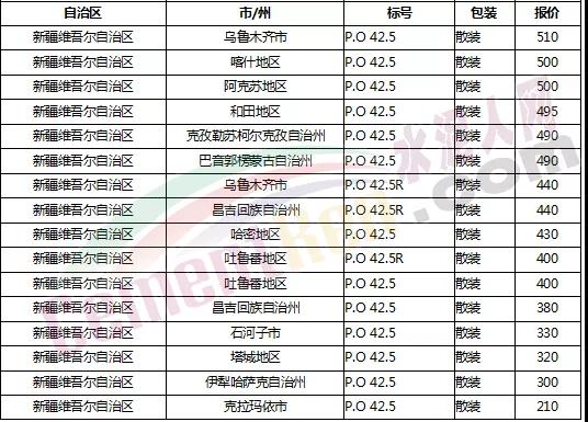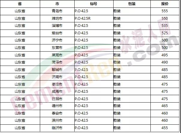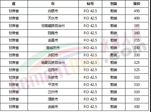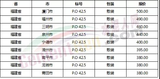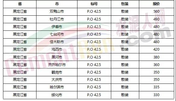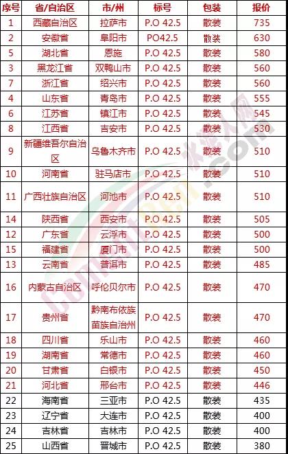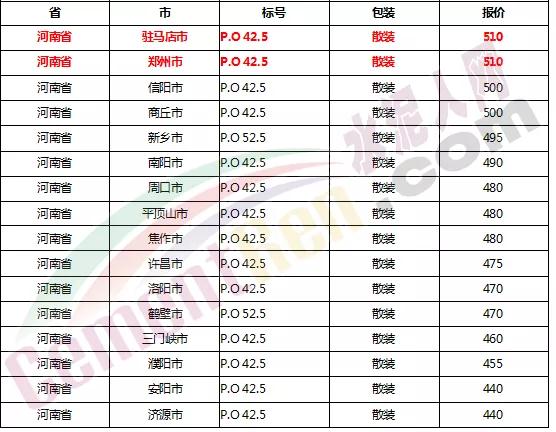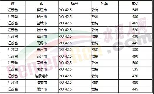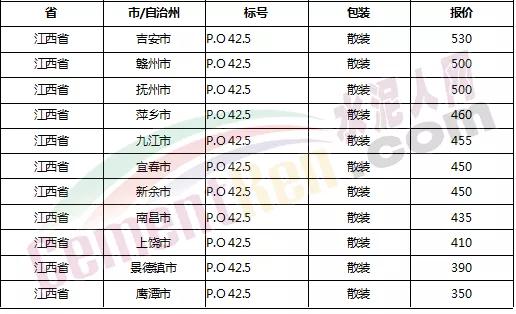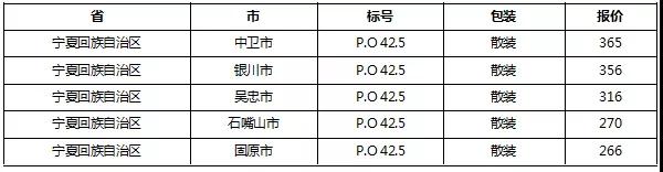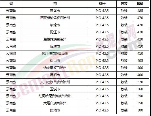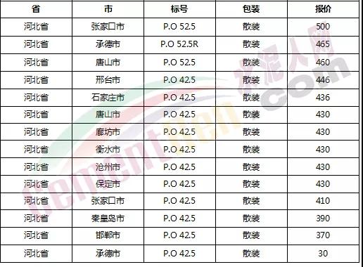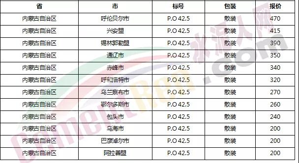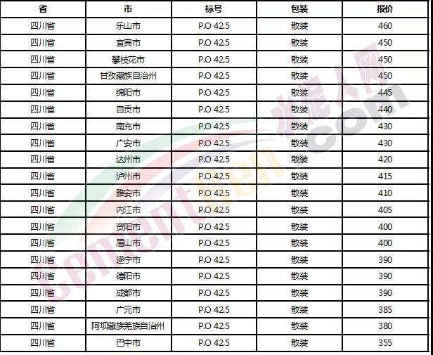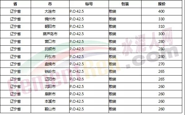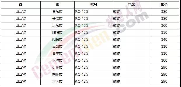 以下是各省主要城市水泥價(jià)格: