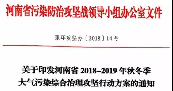 河南省污染防治攻堅戰領導小組辦公室發布《河南省重點行業差異化錯峰生產指導意見的通知(報批稿)》和《關于印發河南省2018-2019年秋冬季大氣污染綜合治理攻堅行動方案的通知》,其中提到,2018年11月15日至2019年3月15日,將重點對全省鋼鐵、焦化、鑄造、建材、有色、醫藥(農藥)等行業實施差異化錯峰生產。