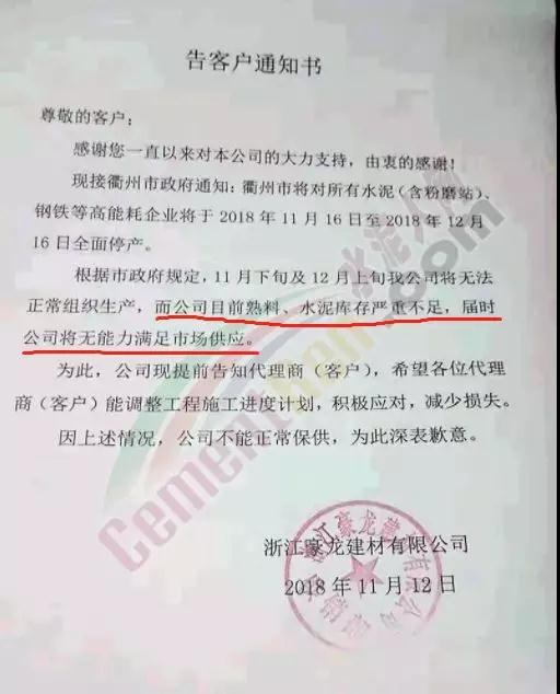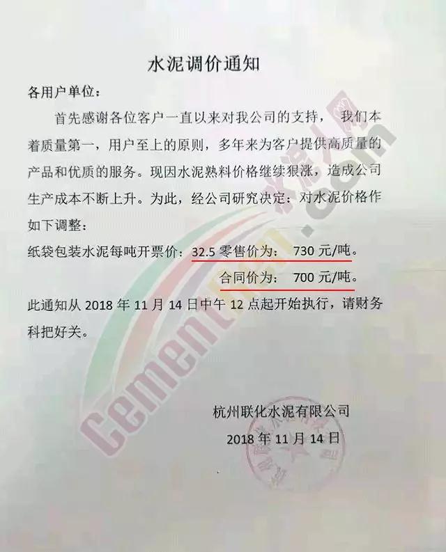 在此輪停產之際,各地竟然出現了水泥庫存嚴重不足的情況,蘭溪南方水泥、常山南方水泥、浙江豪龍水泥、江山南方水泥、建德海螺水泥等眾多企業發布未來斷貨風險提示,而浙江聯化32.5水泥漲價到730元/噸,可謂天價水泥撲面而來。