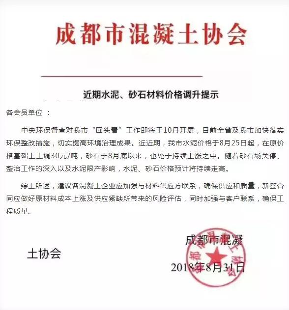 去年業內流出一封由西安市22家預拌混凝土企業聯名發起的公開信,該信接收方為西安市副市長聶仲秋。信件重點就當時由于水泥、砂石骨料價格上漲對當地預拌混凝土行業生存發展產生的影響作了說明。