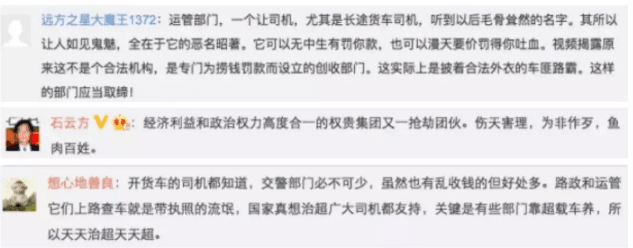 王慶彥建議:“從國際上來看,發達國家根本不存在類似我國的運管路政等部門,對于運管部門,完全可以通過改革,由現有的工商、質量監督等部門來分解或替代運管部門的職能。”不僅是司機,網友對于運管部門是否應該存在,也有很多話要說: