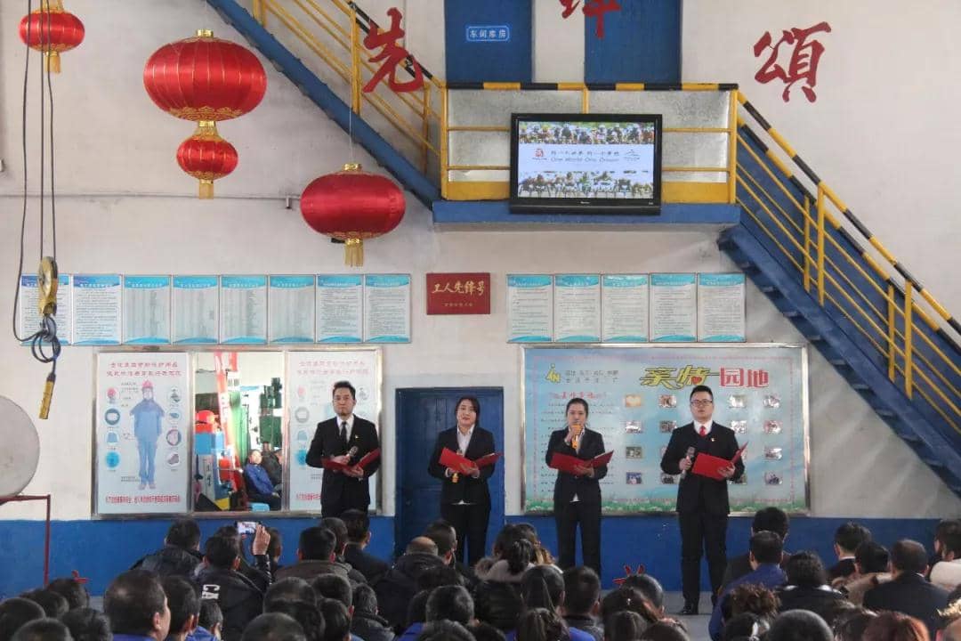 2018年12月18日10點,在慶祝改革開放40周年大會召開的同時,干法二廠在機電鉗工房舉辦了以“不忘初心,牢記使命”為主題的紀念改革開放40周年詩歌朗誦比賽。金泥集團公司監事會主席張榮川,黨委副書記、紀委書記徐世平,行政辦副主任曹鐵民及干法二廠干部職工200余人現場觀看了演出。