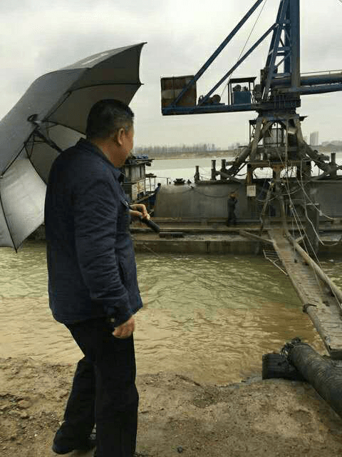 (圖為總經理鄭群在益陽沅江考察可以轉船礦粉的碼頭)
