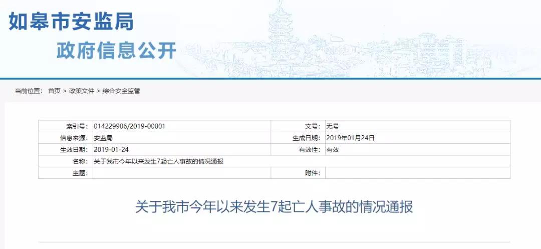 2018年12月18日以來,我市生產安全事故頻發。至今已發生7起、死亡10人,教訓深刻,損失慘重。現通報你們,請針對7起事故暴露出的突出問題,結合轄區安全管理現狀,舉一反三,精準管控,確保“春節”前后的生產安全。