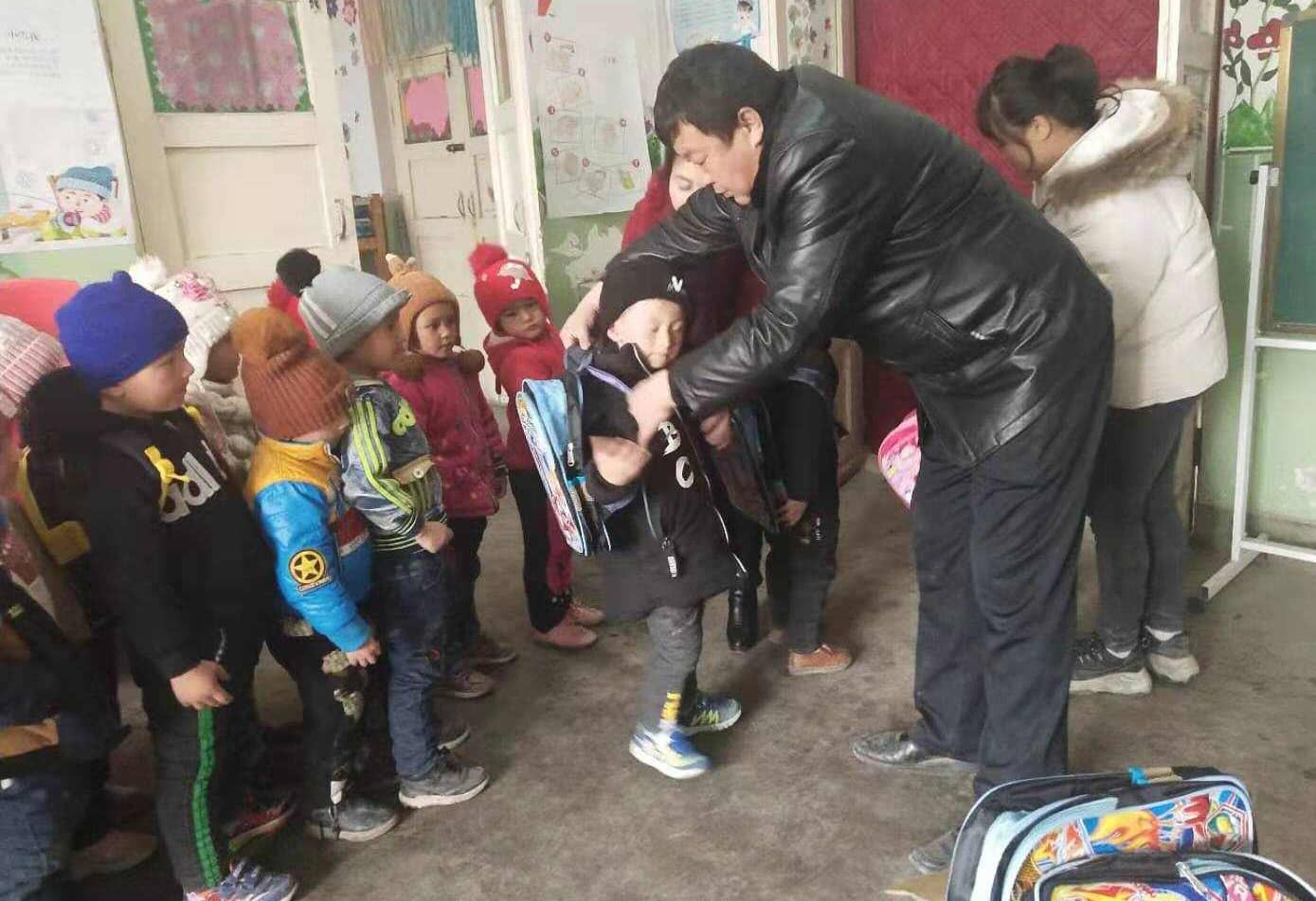 一份耕耘,一份收獲。去年底,烏帕爾中心幼兒園對全鎮(zhèn)各村幼兒園進行了期終測試,十二村幼兒園小二班順利通過了測試,且部份小朋友成績優(yōu)秀,受到了中心幼兒園的表揚。于是在今年放寒假時,吳志強自費購買了三十二個書包,兌現(xiàn)了對小朋友們的承諾。