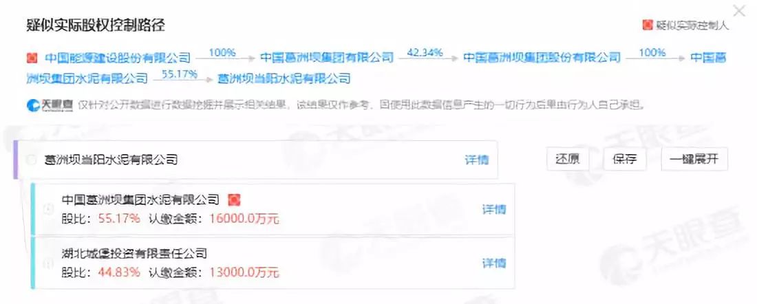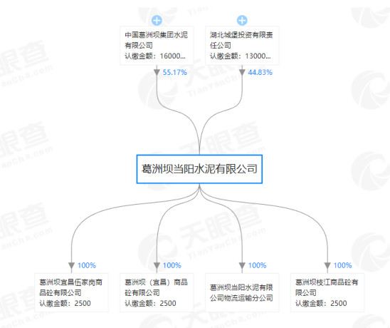 天眼查數據顯示:葛洲壩當陽水泥為中國葛洲壩集團水泥有限公司和湖北城堡投資有限責任公司合資,由中國葛洲壩集團水泥有限公司控股。