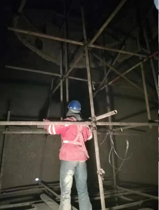 從上述資料圖可見,預熱器內設立鋼管架,架子上鋪設木板,同時搭建防護棚,以保護人員安全。檢修作業(yè)時工作人員站立于鋼管架上,憑借安全帶防護,防止墜落。若上述安全措施不當,或工作人員未系好安全帶,便極易發(fā)生高處墜落事故。