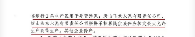 其中,豐潤區(qū)冀東水泥有限公司唐山分公司、灤州市冀東水泥有限公司灤縣分公司、灤南縣耀東水泥、古冶區(qū)冀東啟新水泥按照核定處置污染的最低負(fù)荷生產(chǎn)。