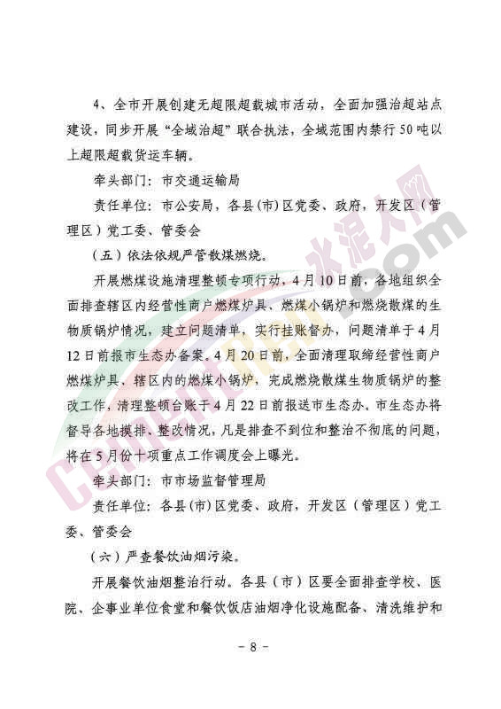 水泥人網最新消息:日前,唐山市人民政府辦公室發布內部明電唐政辦傳【2019】2號《關于印發4月份大氣污染防治強化管控措施實施方案的通知》稱,《4月份大氣污染防治強化管控措施實施方案》已經市政府同意。